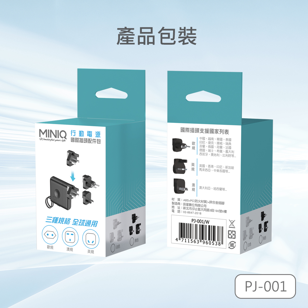 ABS-PC防火材質,充電更安心 / 廣泛應用MINIQ行動電源 / 英規。澳規。歐規三種規格出國充電免擔心